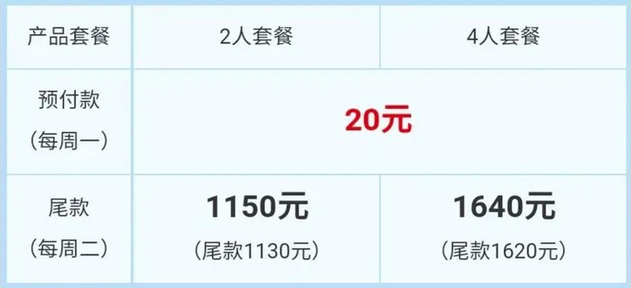 所以买2人套餐,最终只有1人出行,或者买4人套餐,最终3人出行,都行,没用的那个名额就当废掉。