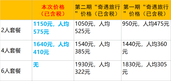 简单对比了一下以前几次“奇遇旅行”的价格,本次虽然比之前贵,但依然算便宜的,可以冲!