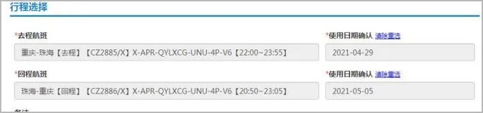 航线预约链接:yy.csair.com(通过尾款订单号和联系人手机号进入)