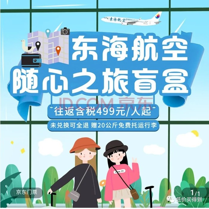 东海航空机票盲盒,含税499元/人,往返一趟,含20kg行李托运,未兑票可全额退款。12岁以下儿童不适用。