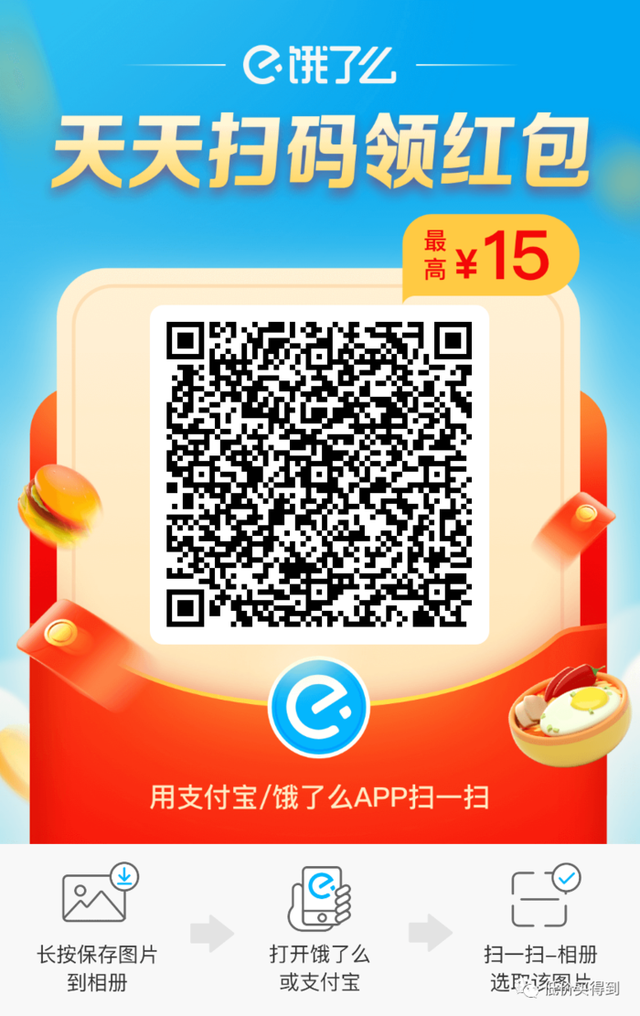 微信/支付宝/饿了么识别以下二维码,领饿了么外卖红包。