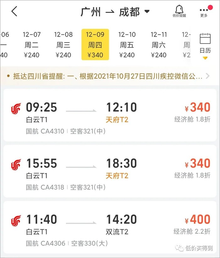 如果直接购买国航的机票,价格340元~400元,比冬游卡贵40元~100元,优点是购票更灵活。