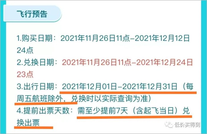 出行时间:12.1~12.31,每周五的航班不能用。至少出行前7天兑换机票。
