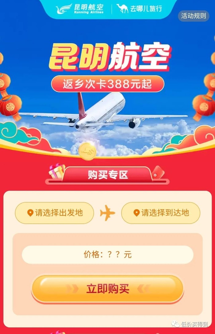 点击去兑换,然后选择航线,找到带有“昆航返乡次卡”标志的航班,就可支付税费,下单兑票。兑票日期:购买后~2.25。