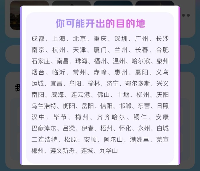 可能开出的目的地:(每个出发地可能开出的目的地不一样)