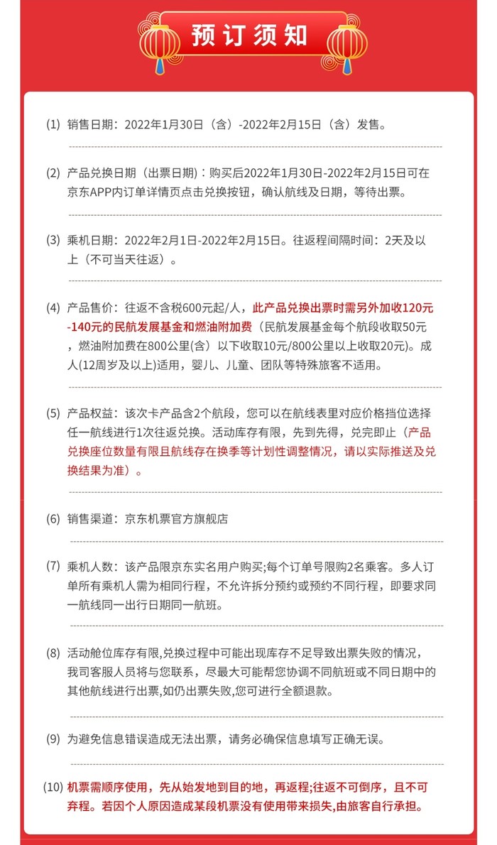 价格:600元~1400元/套,每套次卡可兑换往返机票1套,税费另付。