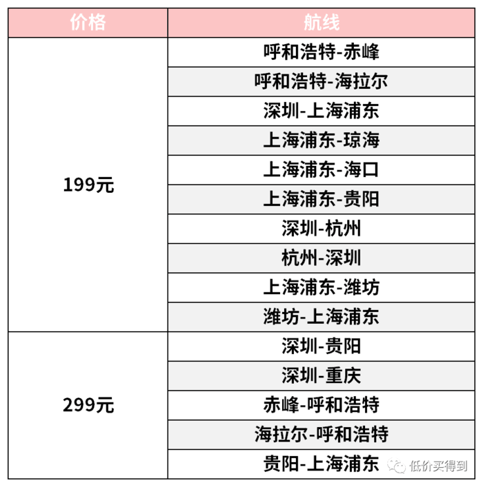 价格与适用航线