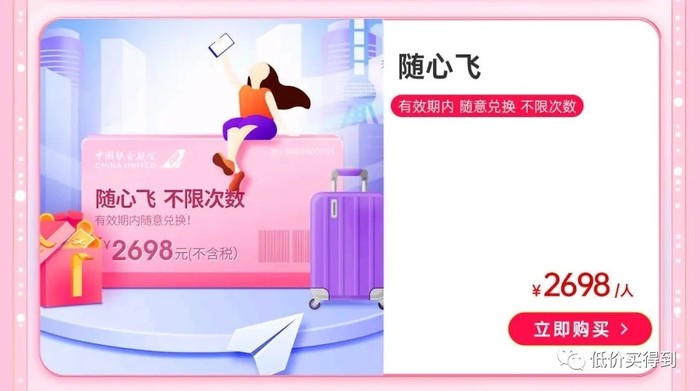 中联航随心飞,2698元/套/人,这应该是目前唯一能买到的随心飞产品!每次兑票税费另付。