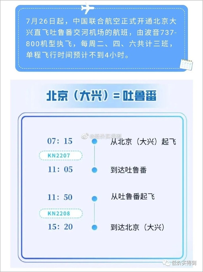 此外,中联航近期还开通了北京=吐鲁番。