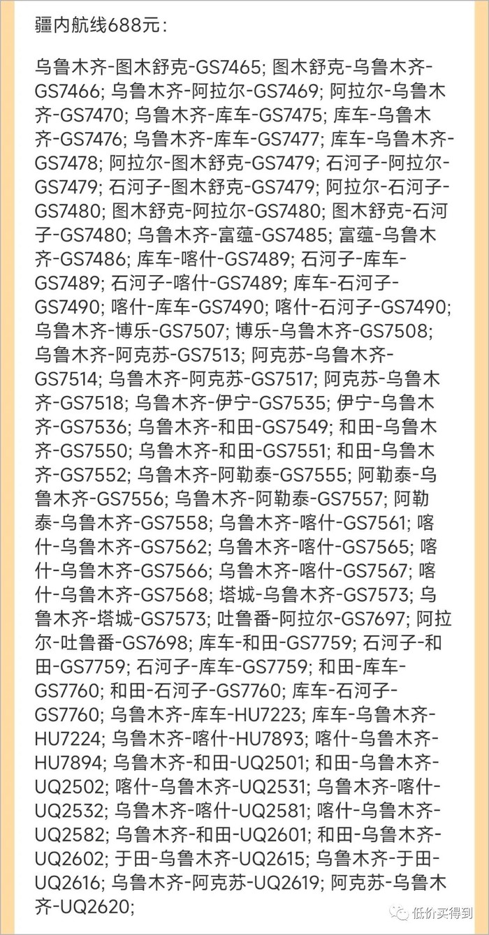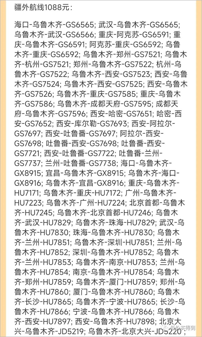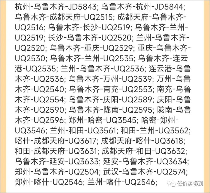 其中包括了北京/广州/深圳/海口/重庆/成都/杭州/珠海/厦门/西安/长沙等地进出乌鲁木齐。