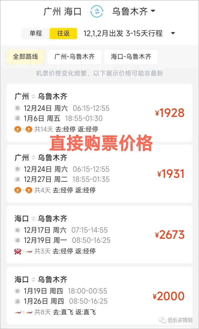 广州/海口往返乌鲁木齐,直接购票2000元左右起,“疆游卡”便宜了1000元左右。