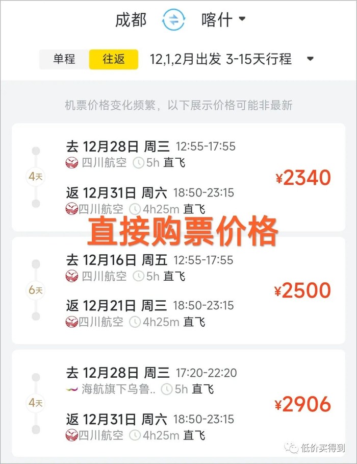 成都往返喀什,直接购票2300多元起,“疆游卡”便宜了1200多元起。