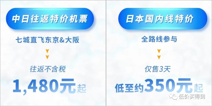 中日特价机票:七城直飞日本东京/大阪,往返不含税1,480元起;