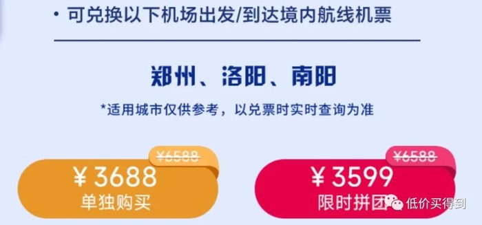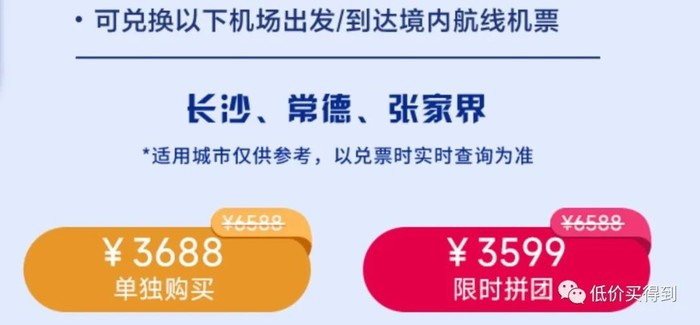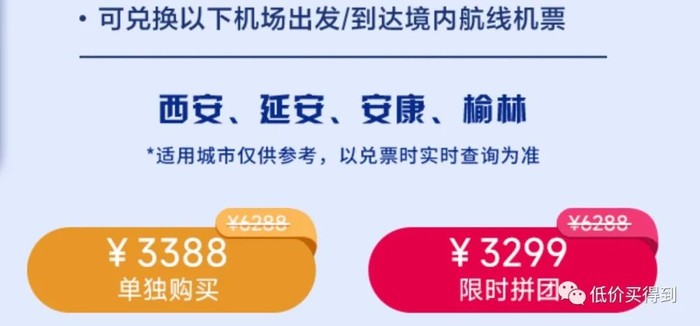 可兑换指定机场出发/到达的南航境内航线机票,每条航线可往返3次。