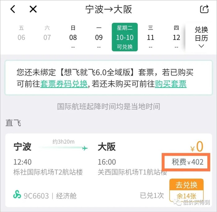 宁波飞大阪,付402元税费。