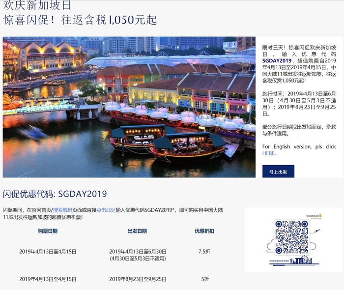 购买平台:新加坡航空官网 http://www.singaporeair.com/zh_CN/cn/plan-travel/local-promotions/cn-sgday19/