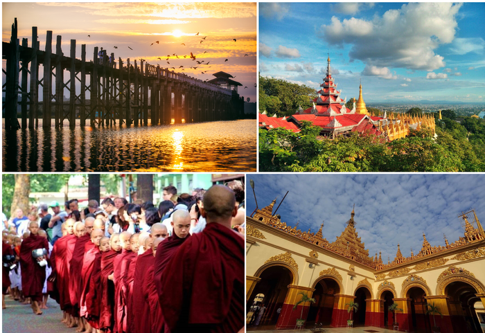 推荐景点:乌本桥、马哈伽纳扬僧院、金色宫殿僧院、马哈木尼佛塔、曼德勒山 等