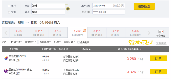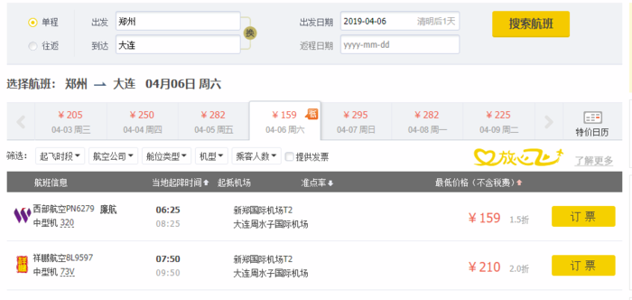网上搜到相对便宜到机票价,分别是159元、280元,秒杀价格明显更便宜。