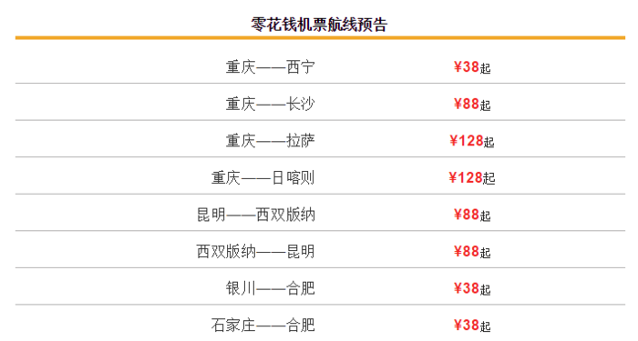 西部航空的零花钱机票,8元、38元、88元、128元的国内特价机票周三上午10点准时开抢!