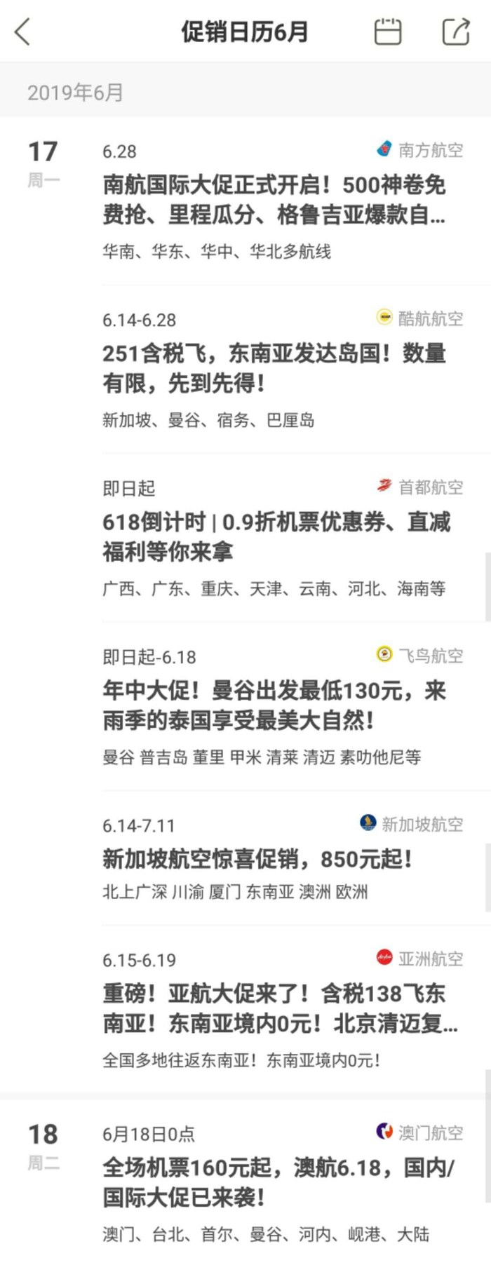 近期还有川航99元大促、国航大促等促销,更多促销信息,可以前往D圈、促销日历查看。