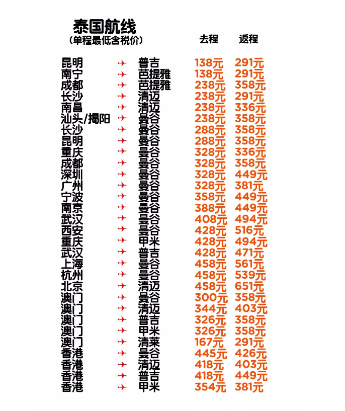 东南亚境内航线,基础航费低至0元!北京—清迈航线回来了!
