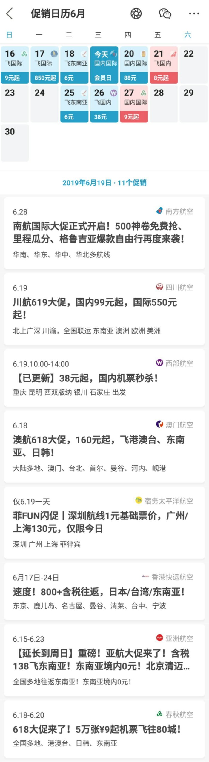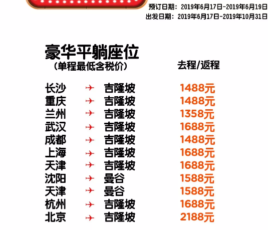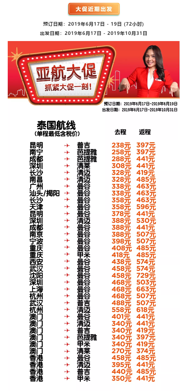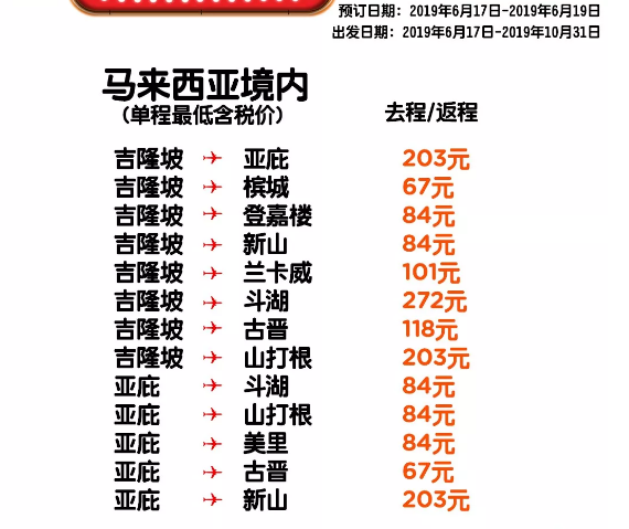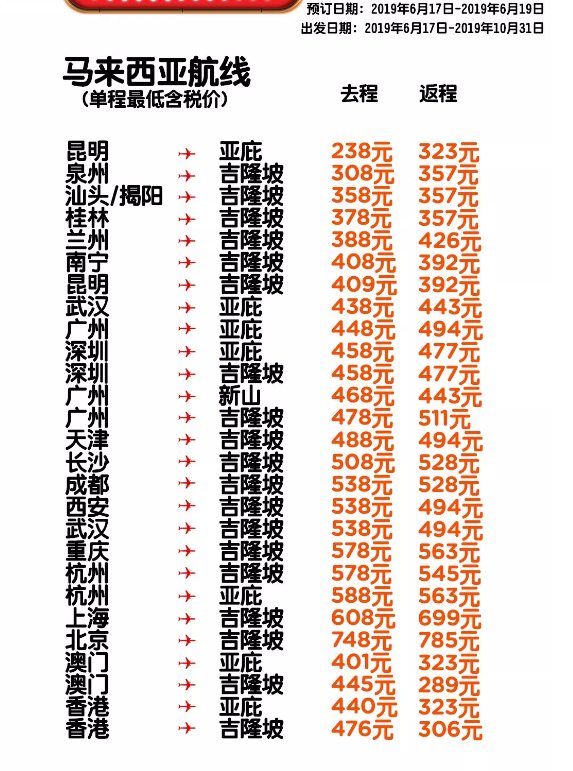 以下是本次促销的全部航线: