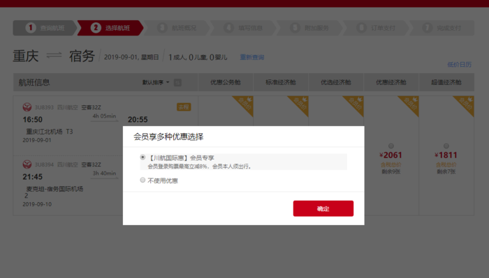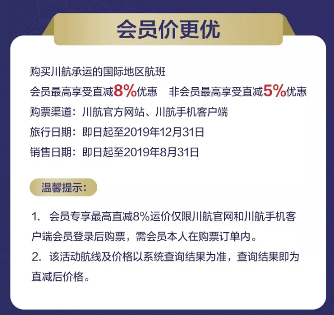 即日起到12.31,川航会员再川航官网、APP购票,还可以享受直减8%的优惠。