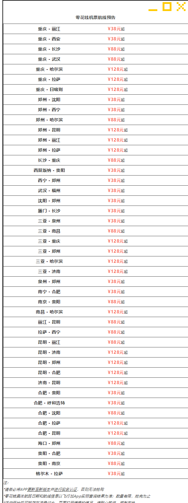 西部航空的零花钱机票,38元、88元、128元的国内特价机票周三上午开抢!