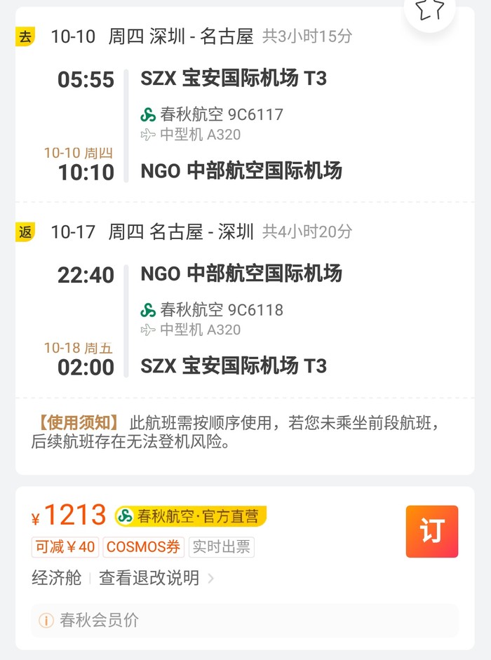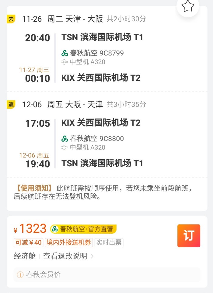 - 去程和回程分开买,可能更便宜,建议购买前先对比一下价格。
