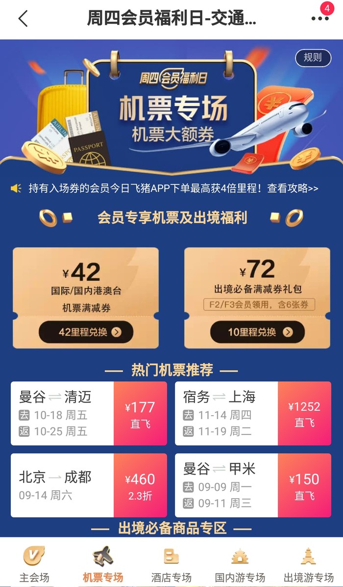 今天飞猪福利日,可以42里程兑换42元机票券,刚需的朋友上吧~
