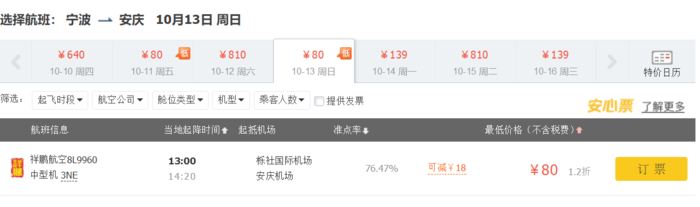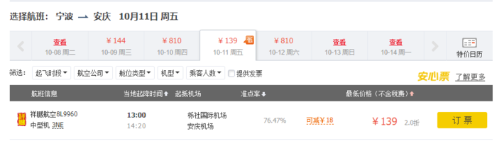 昨天搜,宁波飞安庆,139元,今天也明显降价了。