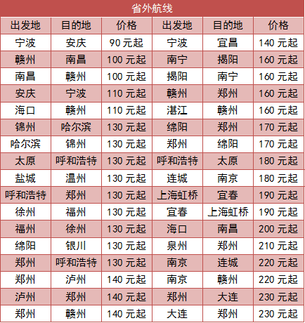 以上价格不含民航发展基金及燃油附加费,还有更多航线,具体以实际查询为准。