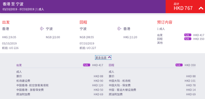 香港往返宁波含税往返折合693元。正国庆出发不请假。