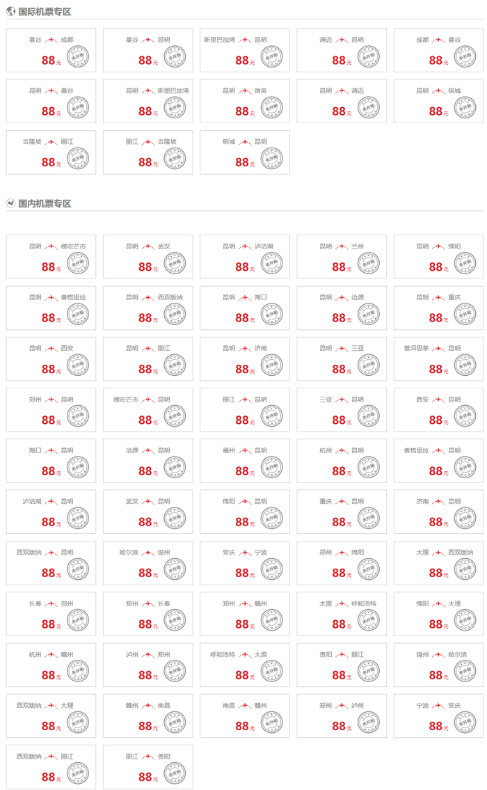 国内航线秒杀票价一般都是88元,加上50元的税,才138元!