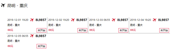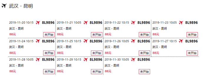 比如昆明飞海口,兰州/西安/太原飞昆明,武汉/重庆飞丽江,这些跨省机票都是这个价!