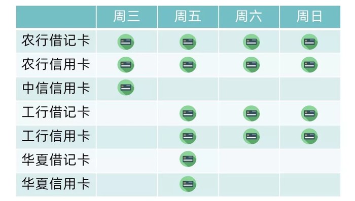 每周三五六日指定银行银联卡(详见下图)