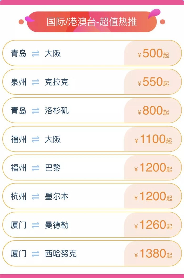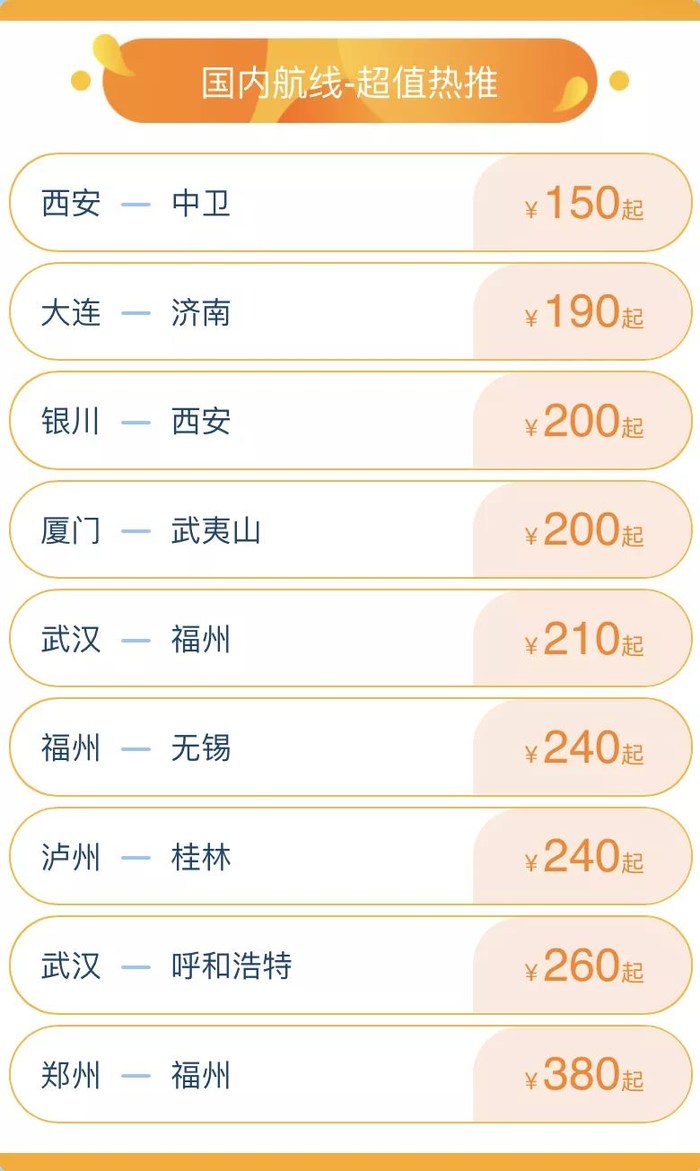 超多航线,低至150元起!