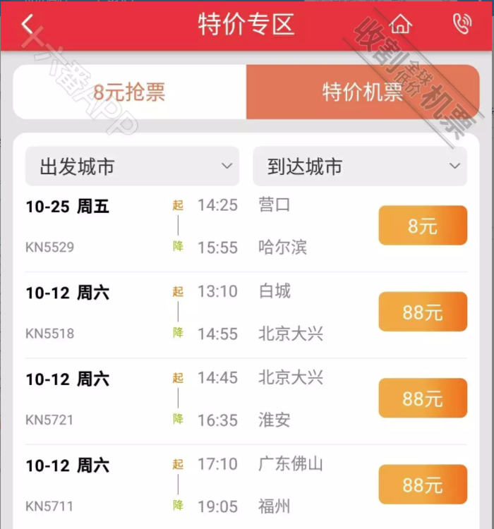 此外,中联航APP升级之后,参加8元 88元机票秒杀超直观!