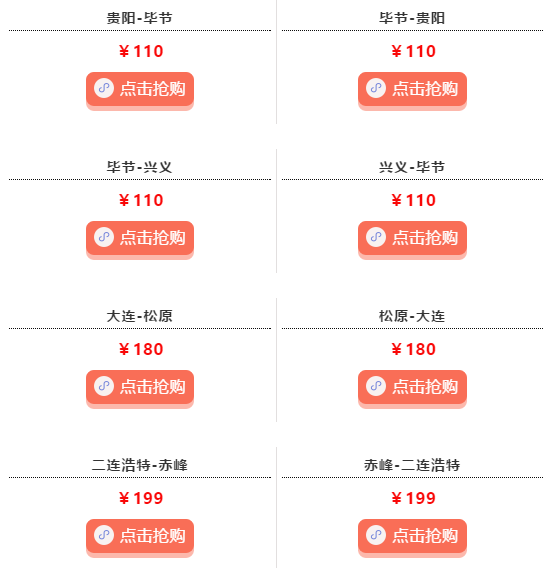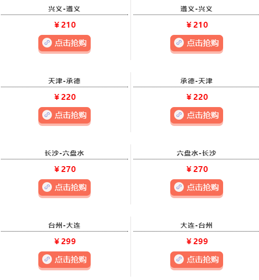 赤峰飞大连含税110元,携程同日期同航班非促销价格268元。促销价格比非促销价格便宜158元!