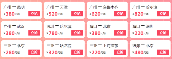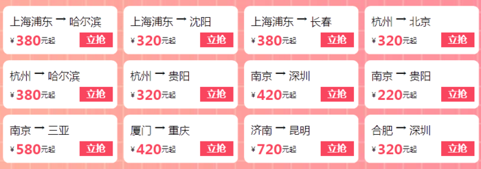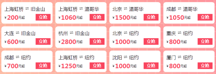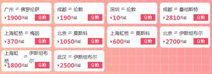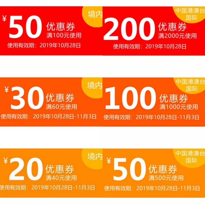 抢票日期:2019年10月28日00:00-2019年11月3日23:59(境内机票抢购仅限28号一天,但国际机票抢购持续3天)
