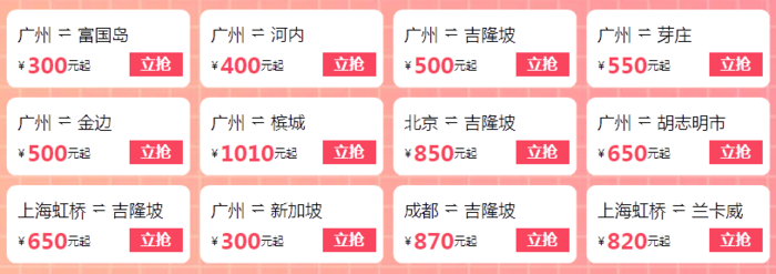 200多元往返泰国,300多元往返东南亚,600多元往返日本,国内机票1元,1699往返中西亚+酒店,2K+往返欧洲,等超劲爆价格!注意,以上都是含税总价!
