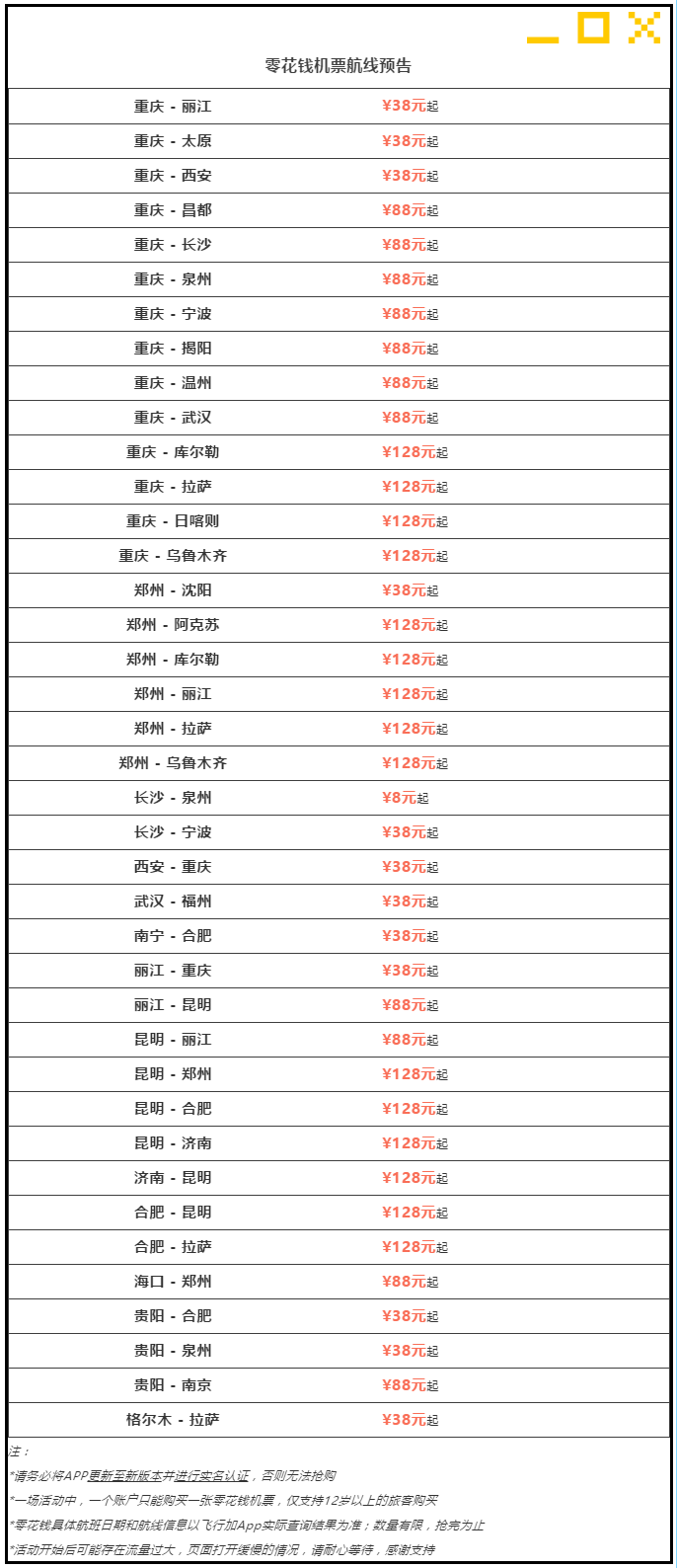 西部航空的零花钱机票,38元、88元、128元的国内特价机票周三上午开抢!