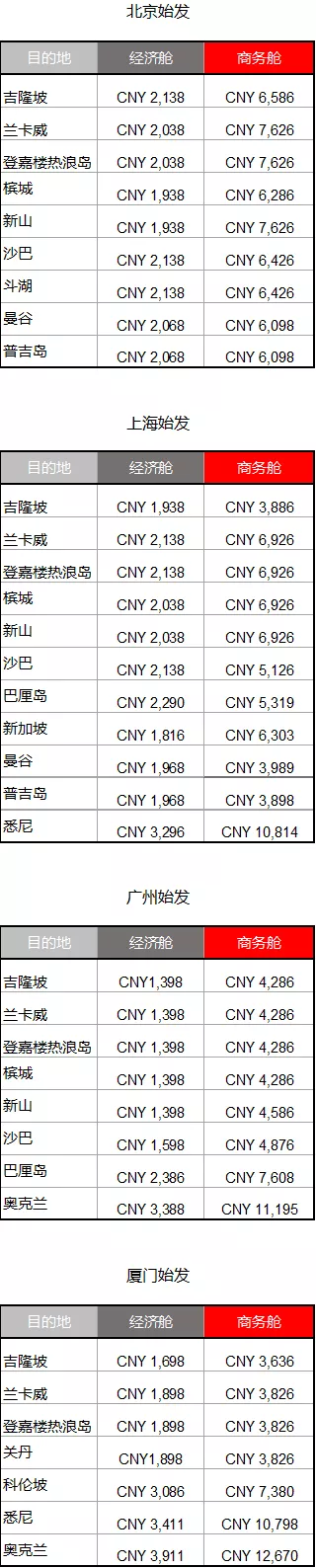 北、上、广、厦等国内多地出发飞新加坡、兰卡威、古晋、亚庇、孟买、悉尼、伦敦等城市。