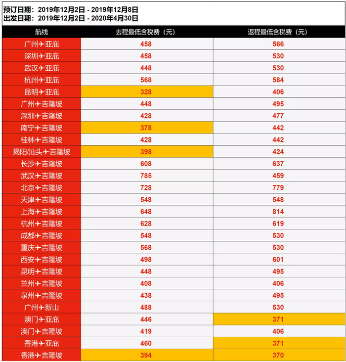 出发日期:即日起至2020年4月30日