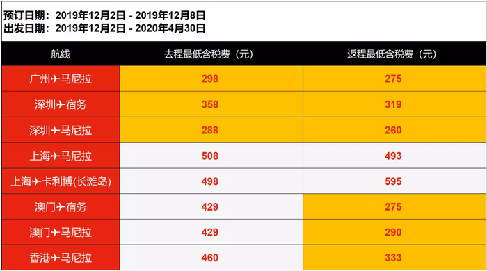 广州 → 马尼拉 298元