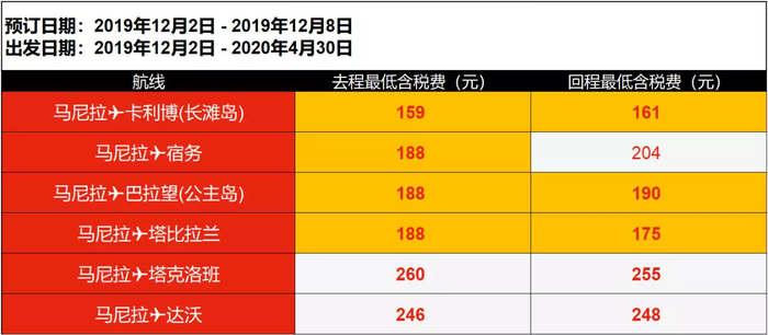 马尼拉 → 塔比拉兰 188元