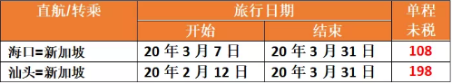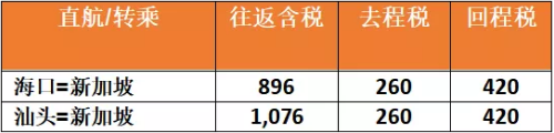 含税583元起往返日本、东南亚!海口往返新加坡含税价格为人民币896元起;