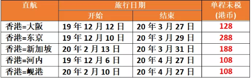 出行日期: 2019年11月5日至2020年3月31日(部分日期除外,以官网为准)