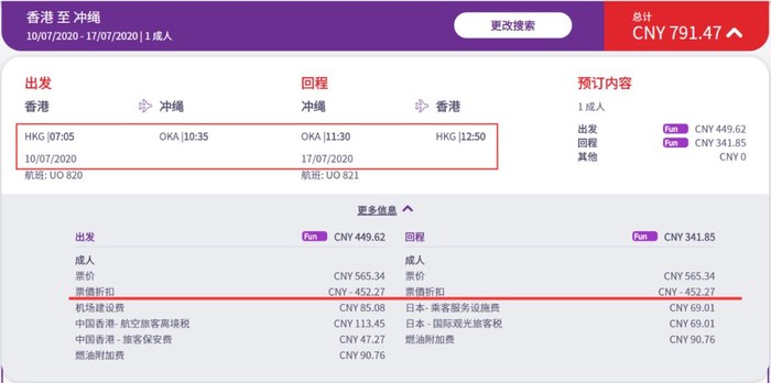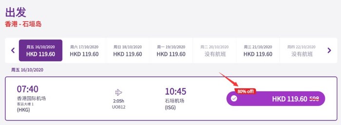 实测了一下,在官网搜索往返票,看到以下这种80% off 标注的,就是2折活动机票。