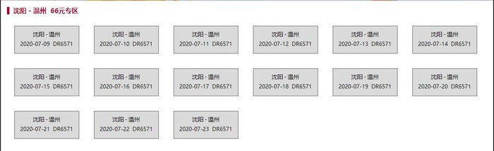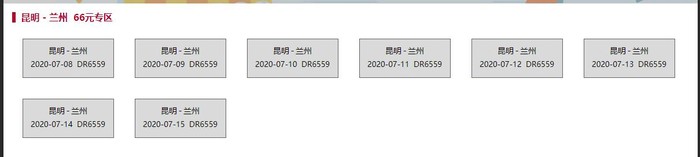比如以下是昆明-兰州、沈阳-温州两条航线的航班日期。